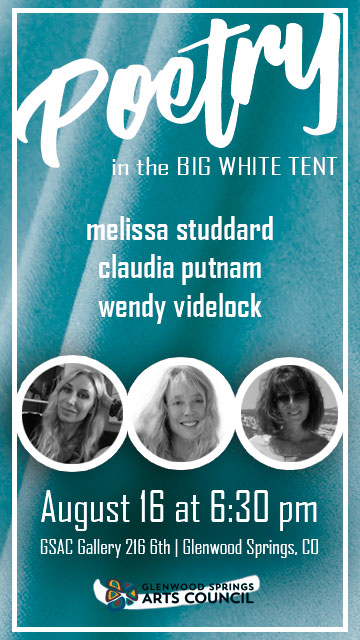 POETRY READING: Live at the Glenwood Springs Arts Council tent, on 6th street at the base of the pedestrian bridge. Tues 8/16, 630 PM.