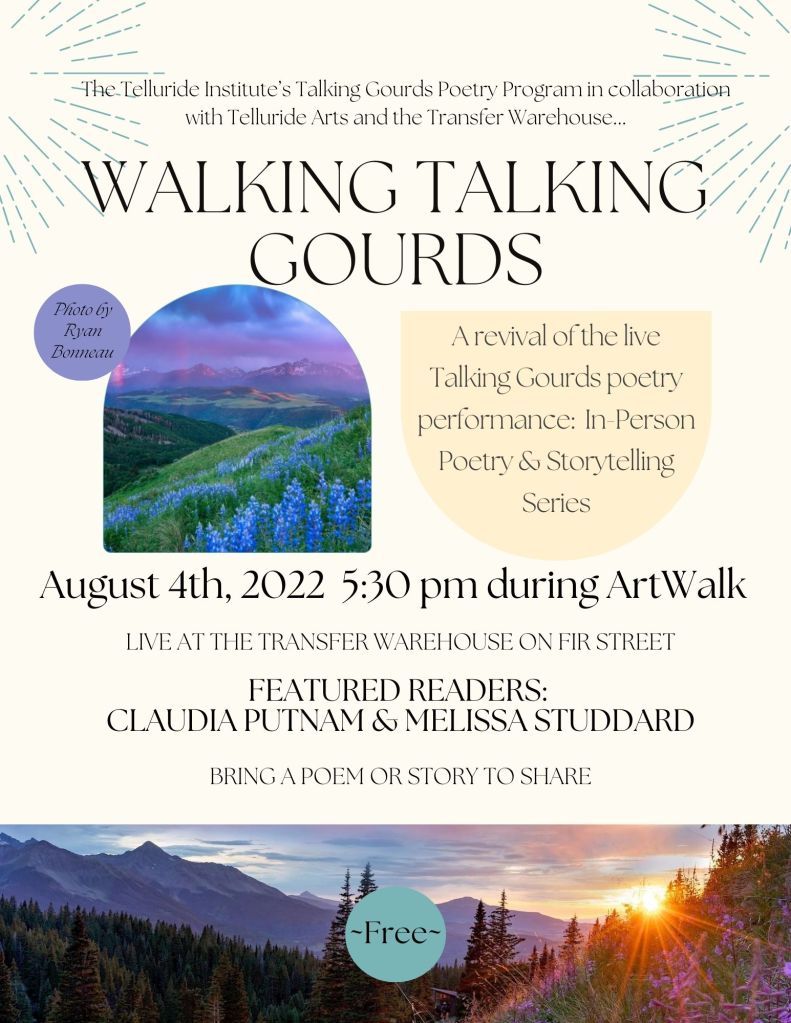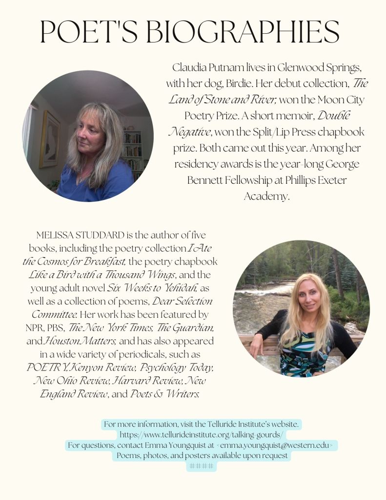 POETRY READING: Excited to once again be reading (and hanging out) with Melissa Studdard. In Telluride, CO, 8/4/22, in-person, Transfer Warehouse on Fir Street, 530 PM (part of ArtWalk).