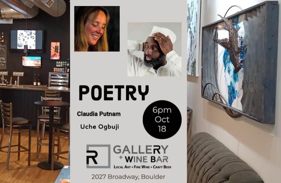 POETRY READING: Coming home to BOULDER to read with Uche Ogbuji at R Gallery and Wine Bar, North Broadway, Tues Oct 18th, 6 PM. Courtesy of Colorado Poets’ Center. Come see us!